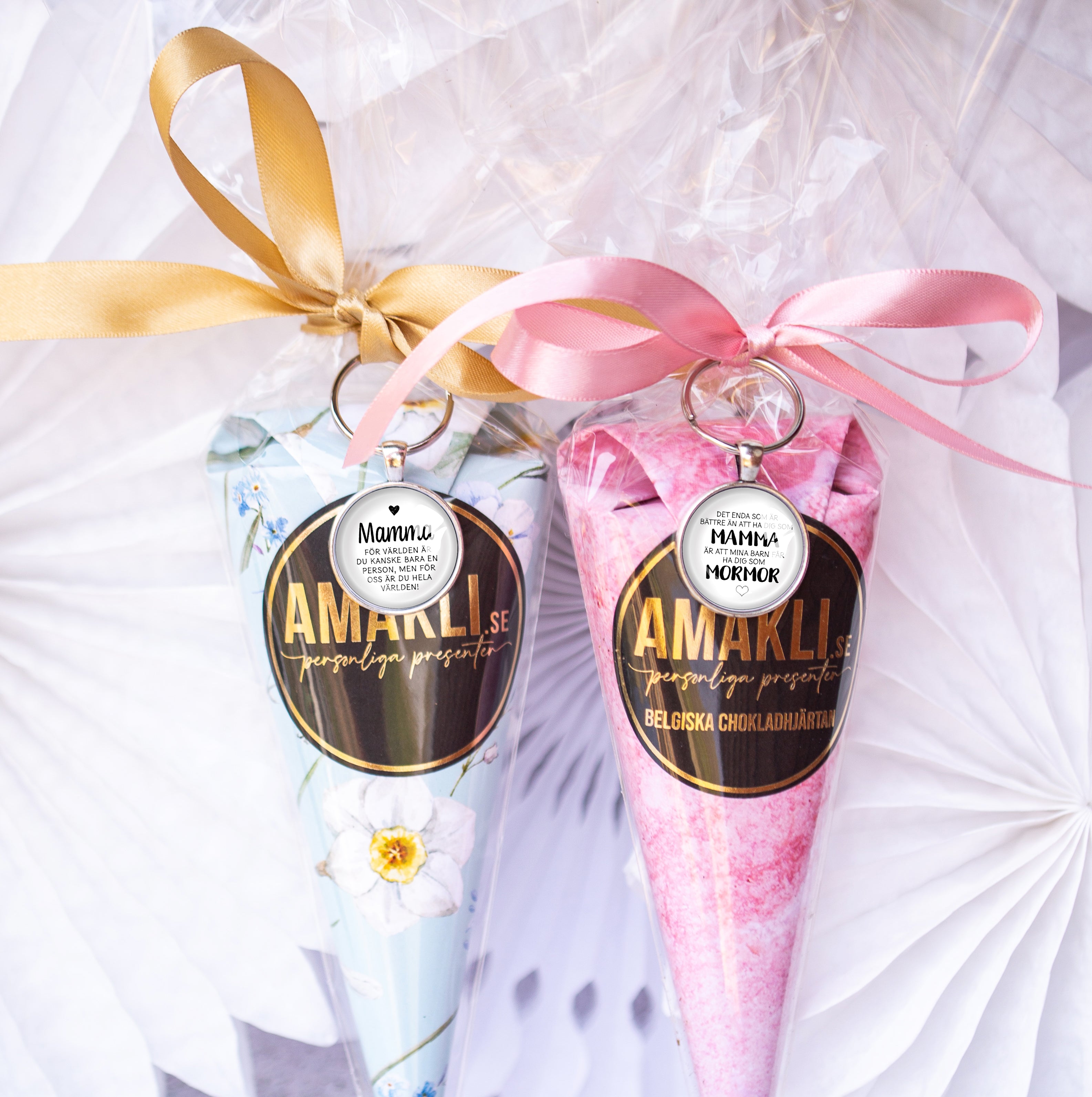 Mors dag är den perfekta dagen att visa vår uppskattning och kärlek till de fantastiska kvinnor som spelar en viktig roll i våra liv. På vår sida hittar du personliga Mors dag-presenter som passar perfekt för mamma, mormor, farmor, bonusmamma och andra kvinnliga förebilder som betyder mycket för dig. Vi erbjuder ett brett sortiment av presenter som kan anpassas med namn, valfri text och till och med foton, så att du kan skapa en unik och hjärtlig gåva som kommer att bli ett minne för livet. Oavsett om du vill ge en mugg med namn, en nyckelring med foto, eller ett presentpaket med godis och ljus, har vi något för alla smaker och stilar. Våra personliga presenter till Mors dag är utformade för att göra varje gåva speciell och för att skapa en känslomässig koppling som varar länge efter att den stora dagen är över.