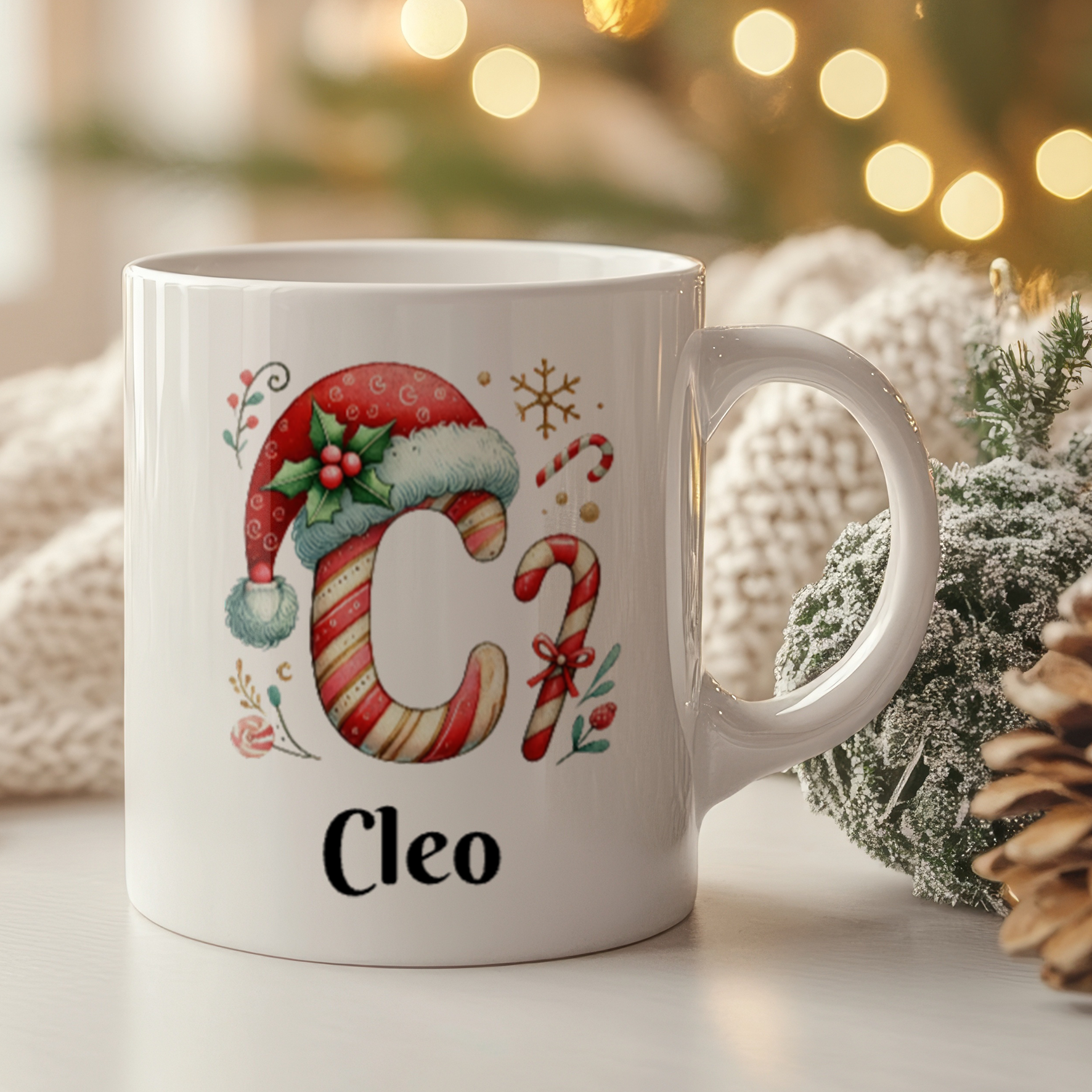Mys ner med en kopp kaffe eller varm choklad under jultider.