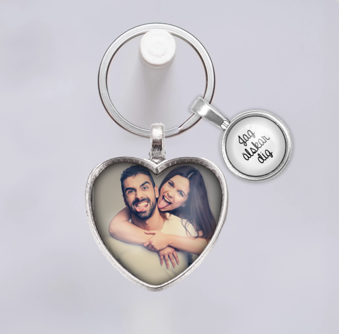 Bär med dig det du håller allra kärast med denna personlig nyckelring med ditt favoritfoto och en fin text i en mindre berlock bredvid!