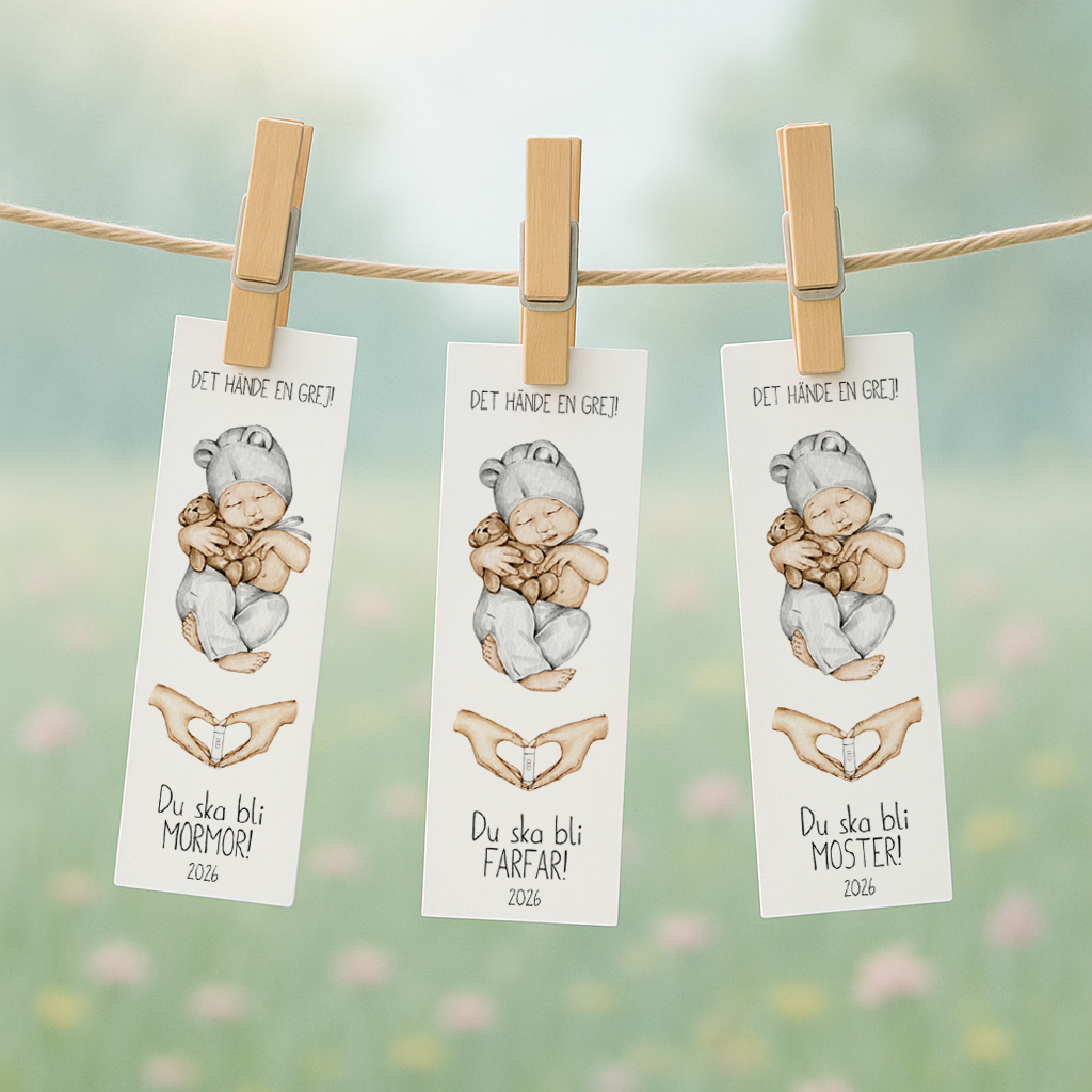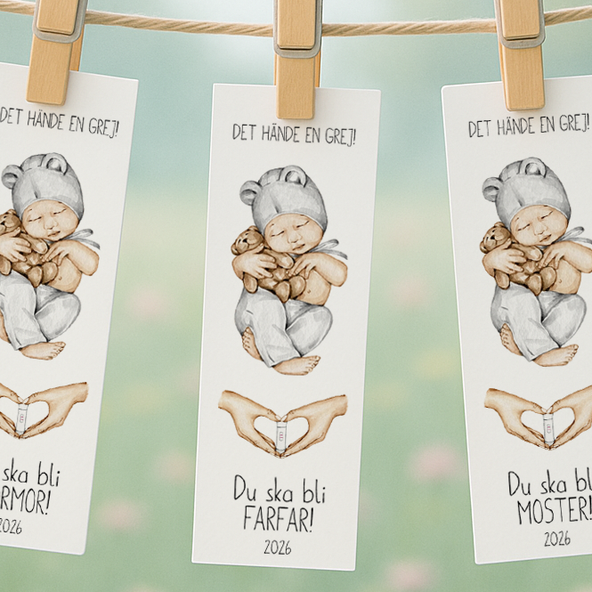 Använd remsan som en fin detalj när ni väljer att avslöja er graviditet – i inbjudningskuvertet, som bokmärke i favoritboken eller fäst den på en liten presentask. Ett personligt, lekfullt och oförglömligt sätt att sprida glädjen om er växande familj!