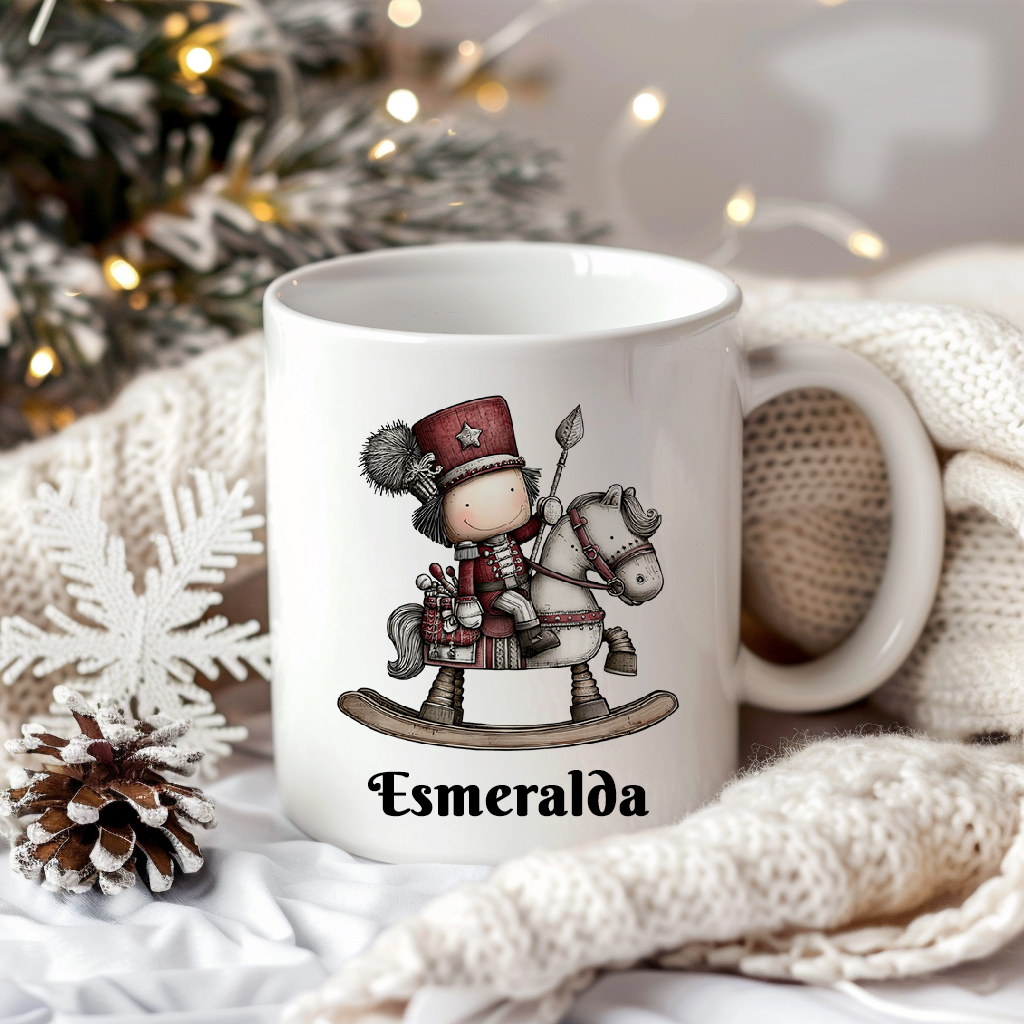 En söt och detaljrik mugg med ett charmigt julmotiv av en liten trumslagare pĂ„ gunghĂ€st. Trycket i varma vintertoner ger en sagolik kĂ€nsla â perfekt till julens alla varma drycker. Personlig med namn för en extra kĂ€rleksfull touch, fin som bĂ„de julklapp och samlarmugg.