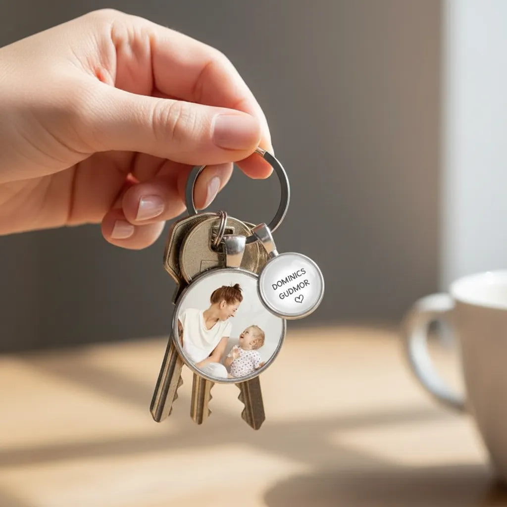 Bär med dig det du håller allra kärast med denna personlig nyckelring med ditt favoritfoto och en fin text i en mindre berlock bredvid!