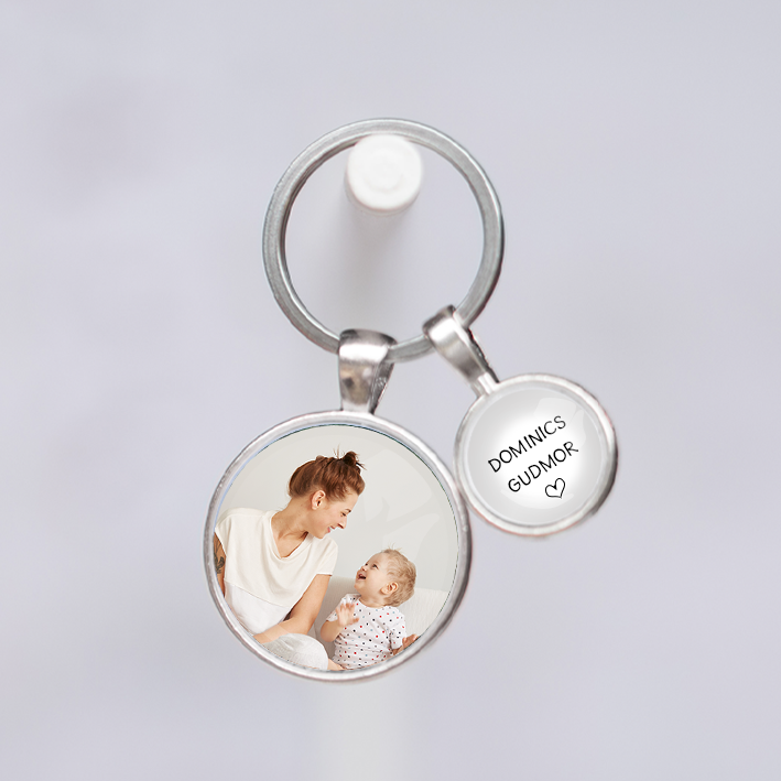 Bär med dig det du håller allra kärast med denna personlig nyckelring med ditt favoritfoto och en fin text i en mindre berlock bredvid!