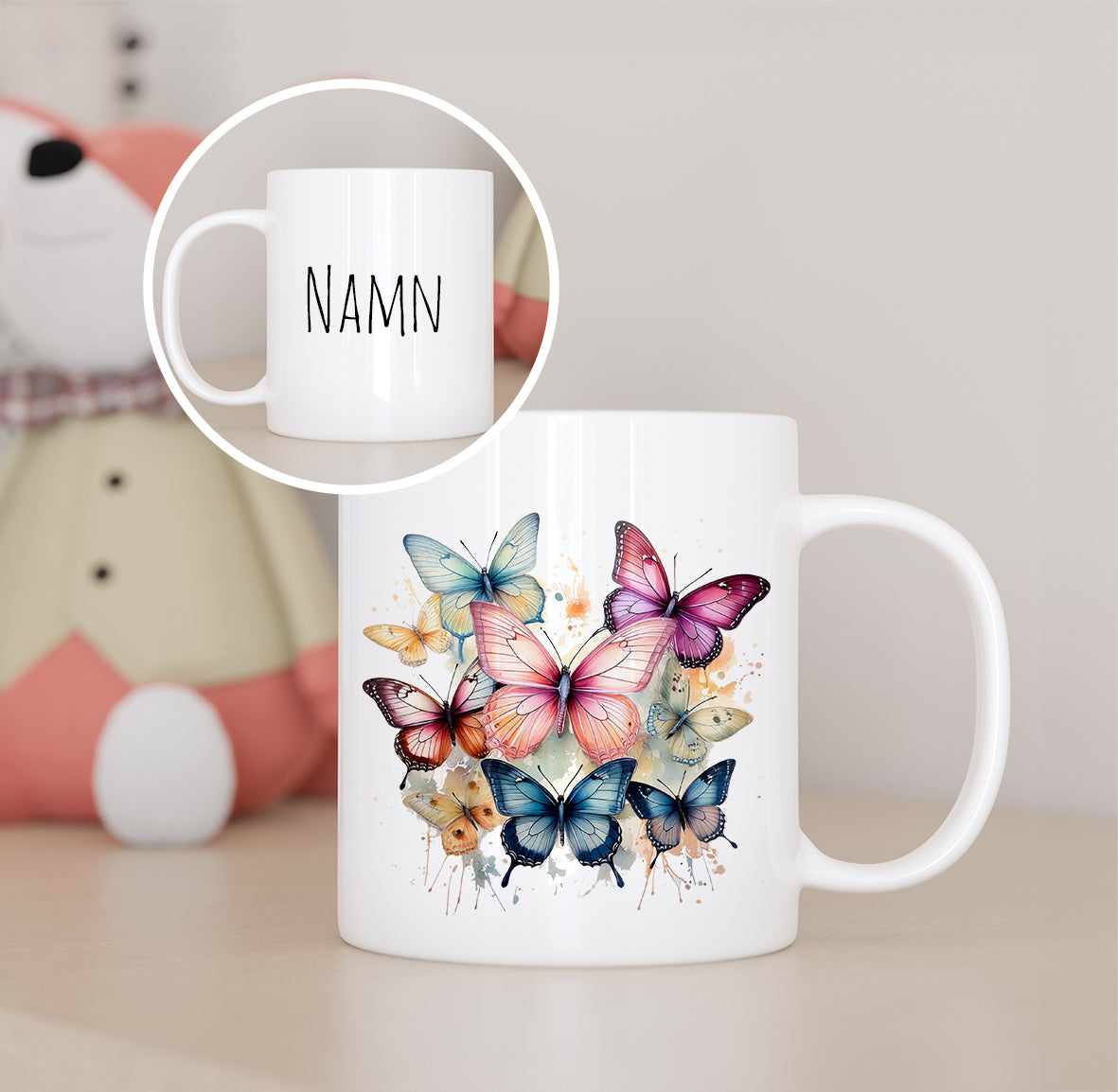 Denna barnmugg har barnets namn på ena sidan och en ljuvligt färgglad fjäril på den andra sidan. En riktigt fullpott till present om du frågar oss!